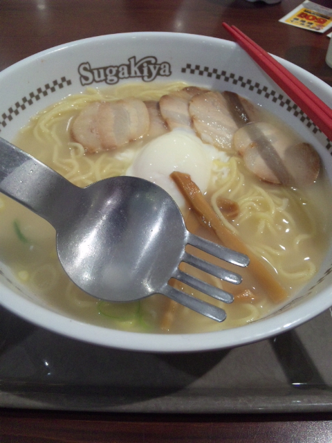 写真は寿がきやのラーメン。高校時代の放課後の味。とってもリーズナブルで味もそれなりなんだけど、これを食べるとホッコリ懐かしい気分になるんですよねー。スプーンが特徴的でしょ?昔はフォーク状の部分が端についてたんだけど少し形が変わったんですねー。アイデアは斬新ですが相変わらず食べにくいですねーf^_^;