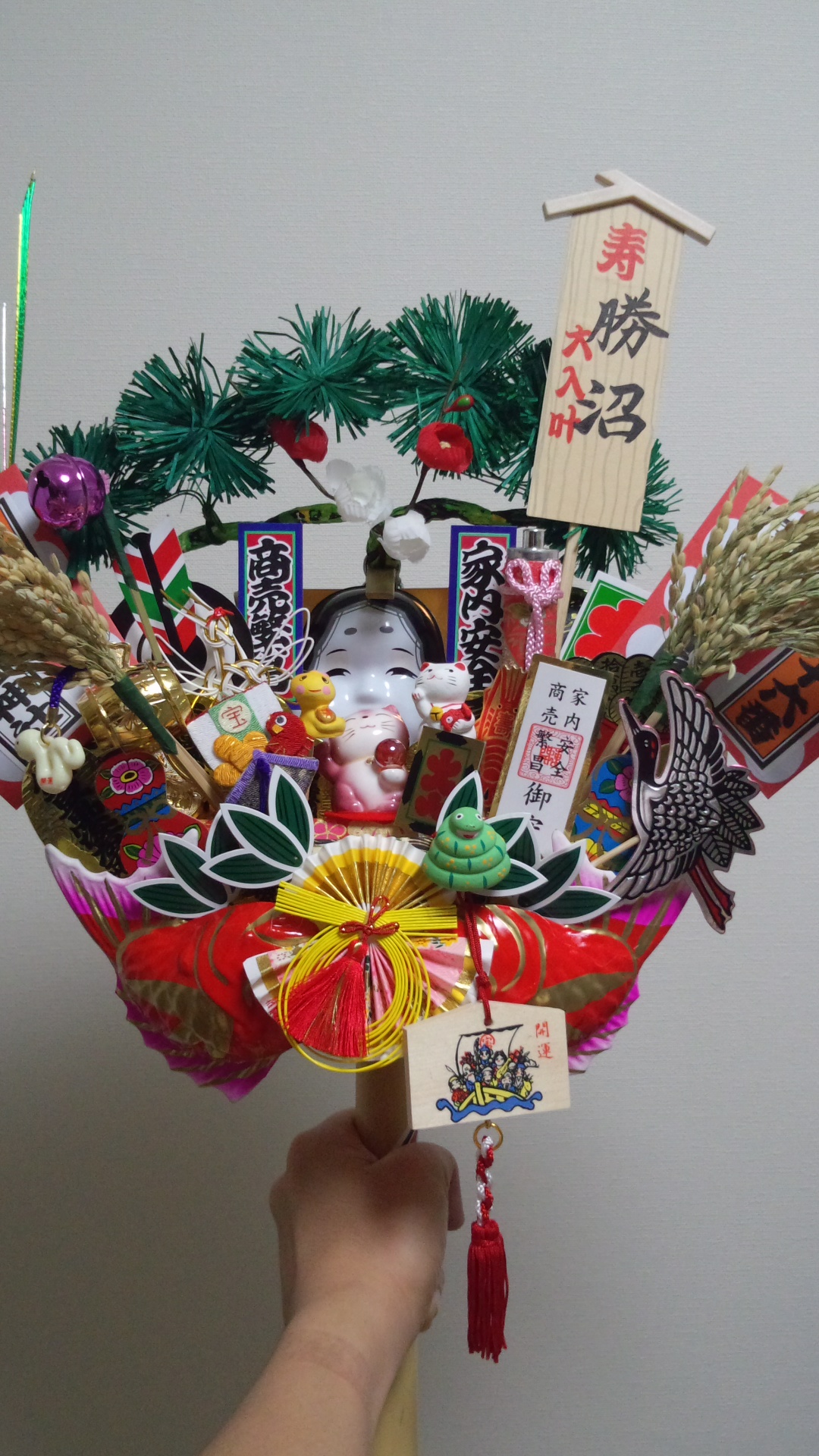 今年はコレ。動物が色々とついていてなんだかポップな感じの一品になりました。拍子木もしっかり叩いて頂き、気の引き締まる思いでした。